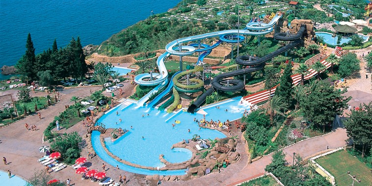 Water Planet Aquapark можно смело назвать самым лучшим в Алании, отдых здесь подойдет и взрослым и детям (но старше 5 лет), он находится рядом с морем и окружен лесами, поэтому находится в Water Planet само наслаждение. В аквапарке насчитываетя только около 20 разных горок для взрослых, здесь также есть "ленивая" река, а для особо активных в аквапарке есть возможность посерфить, заняться рафтингом и даже прыгнуть с тарзанкой. Вы можете остановиться в отеле Water Planet Deluxe и пользоваться всеми благами аквапарка бесплатно или же преобрести входной билет за 27$. Стоит отметить, что для детей до пяти лет вход бесплатный, но при этом им в Water Planet не будет чем заняться.